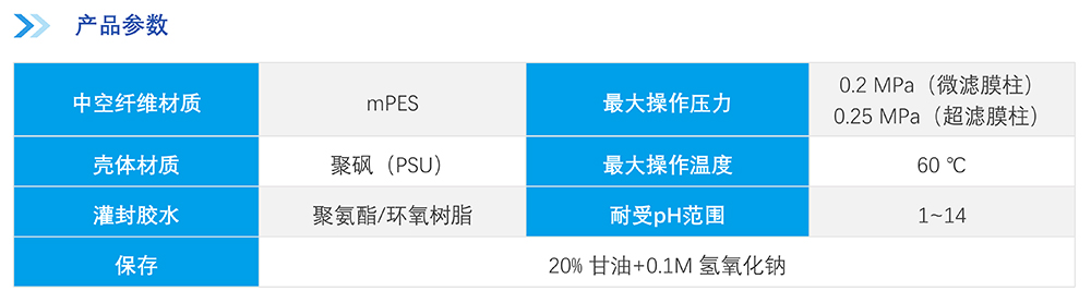 中空纖維膜絲采用改性聚醚砜(mPES)制備,抗污染性能強(qiáng);非對稱梯度孔結(jié)構(gòu)及均一孔徑保證高過濾精度的同時(shí)能獲取更高通量,提高產(chǎn)品收率。中空纖維膜柱采用符合醫(yī)療級別的外殼材料,生物相容性優(yōu)異,在滅菌環(huán)境中穩(wěn)定性優(yōu)良;選用的膠黏劑粘接強(qiáng)度高,耐熱性、耐化學(xué)性及生物相容性優(yōu)良;同時(shí)采用優(yōu)化的注膠工藝,注膠精度高,產(chǎn)品無缺陷。
